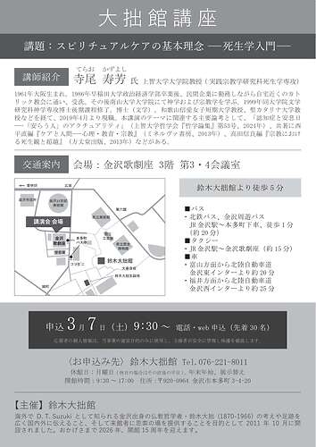 大拙館講座「スピリチュアルケアの基本理念 ―死生学入門―」