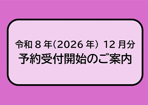令和8年(2026年)12月分の予約を受付けます。