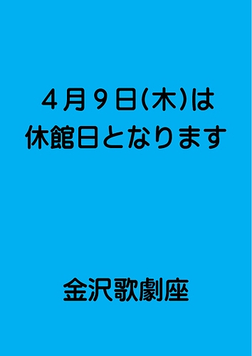 トップページ > イベント情報 > 4月9日(木)は、休館日となります